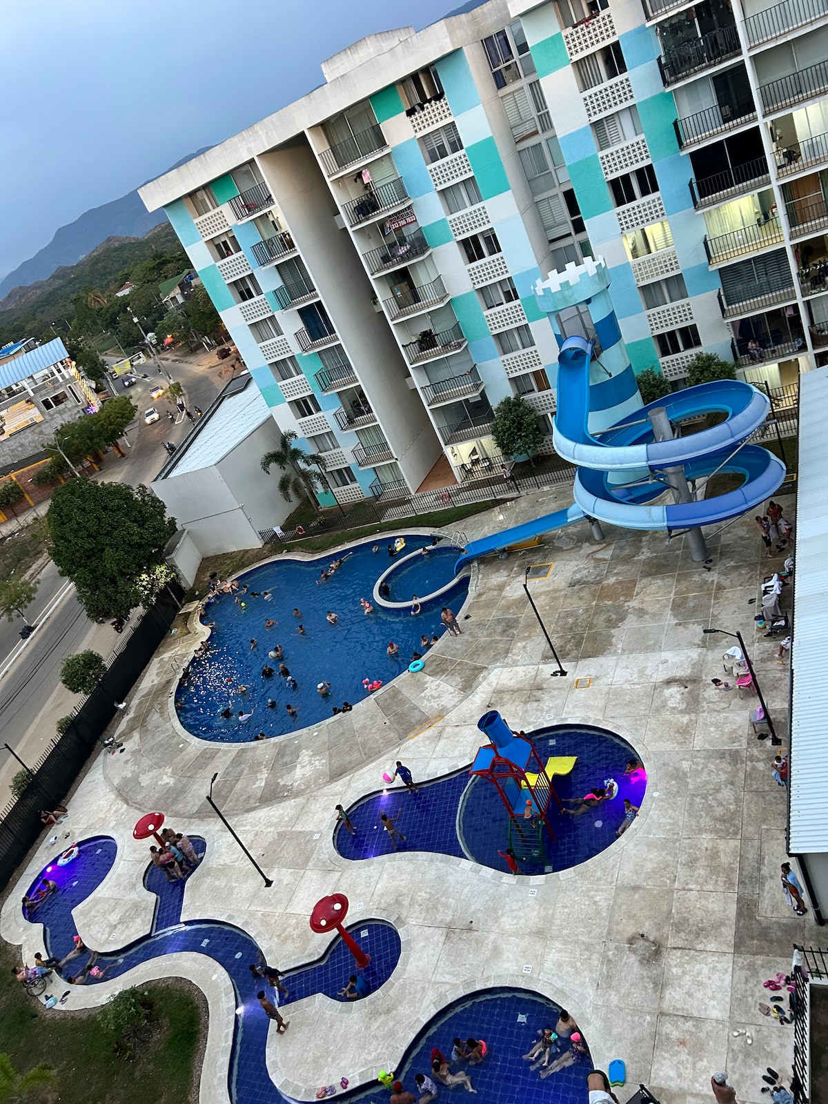 Apartamento en Carmen de Apicalá, piso 2 con balcón, ideal para compartir un descanso en familia, a solo 5 cuadras del parque principal y a 15 minutos de Melgar. Cuenta con 3 habitaciones con ventilador, principal cama doble y baño privado, auxiliares con cama semi doble y sencilla, parqueadero privado y cubierto, ascensor, piscina con tobogán y parque acuático para los más pequeños.