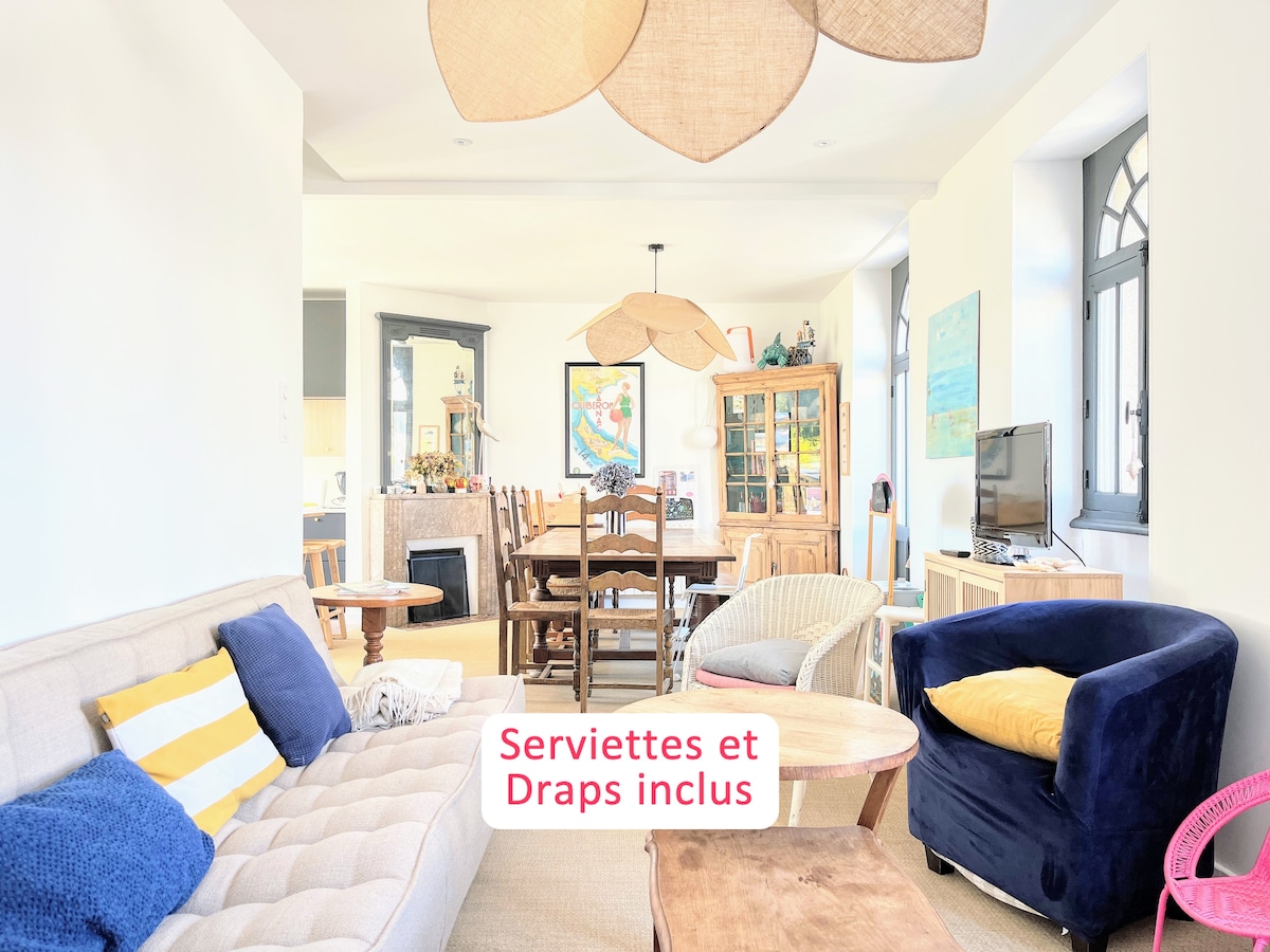 2 VELOS (1 VTC femme et 1 VTC Homme ) - jusqu’au 08/11/2025 et à partir du 06/04/2026 T1 bis de 24 m2 3 étoiles Plages et commerces à pied (250 m) 1 place de parking réservée Cuisine entièrement équipée: plaque à induction, four/micro-ondes, lave-vaisselle, Nespresso… Espace nuit indépendant : lit gigogne 2 matelas de 80*200 (de même hauteur formant un grand lit) Pièce de vie: canapé convertible 2 places SMART TV Lave-linge Jardin clos 36 m2 exposé Sud