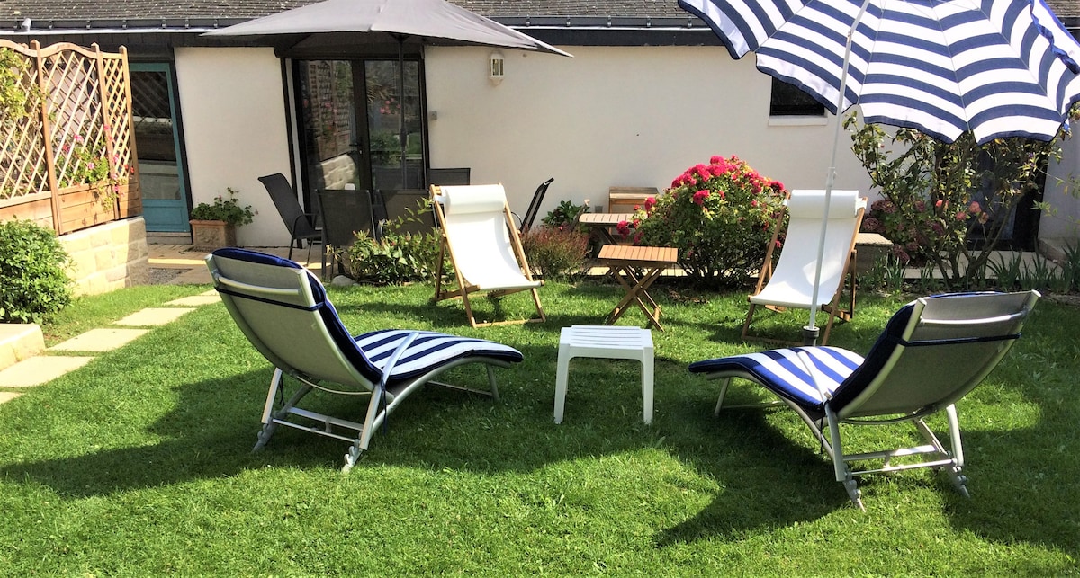 Jolie maison ((50m2) proche des commerces, de la plage, et de la gare. Posez vos valises, vous n'avez plus besoin de prendre la voiture ! Vous apprécierez ce logement pour son calme, car cette jolie petite maison est protégée au fond d'une venelle avec un joli jardin exposé plein sud, clos de murs. Elle se compose d'une chambre en rez de chaussée avec un lit en 140. Une mezzanine ( **échelle de meunier, ne convient pas aux jeunes enfants) avec deux lits de 90, et d'une salle d'eau.