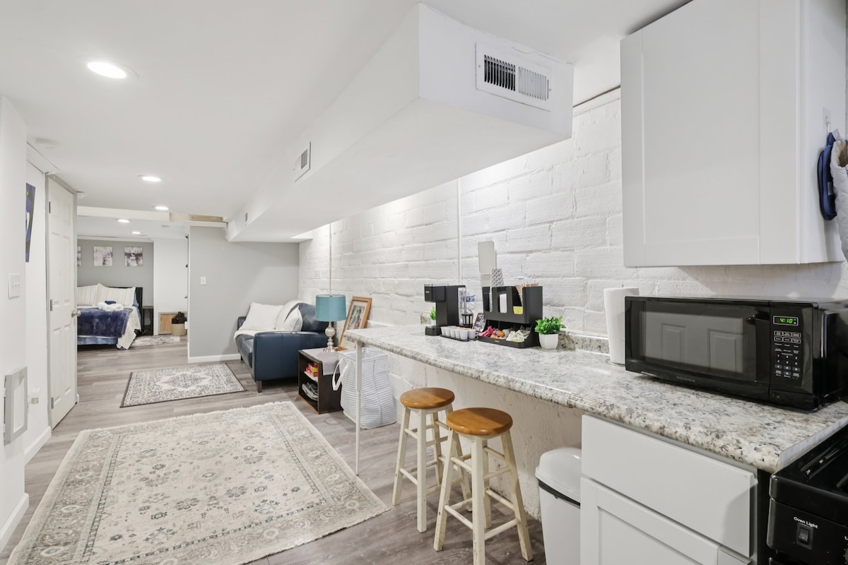 Located right in the heart of Lawrenceville on Butler St., you can't beat this location! Our 1st floor apartment is tastefully furnished and stocked for short term and longer term stays - perfect for living and working, or quick getaways! Our well appointed kitchen is great for cooking, our cozy bedroom invites you to sleep in, and the living room's couch and smart TV invite you to relax! We're small pet friendly, too!