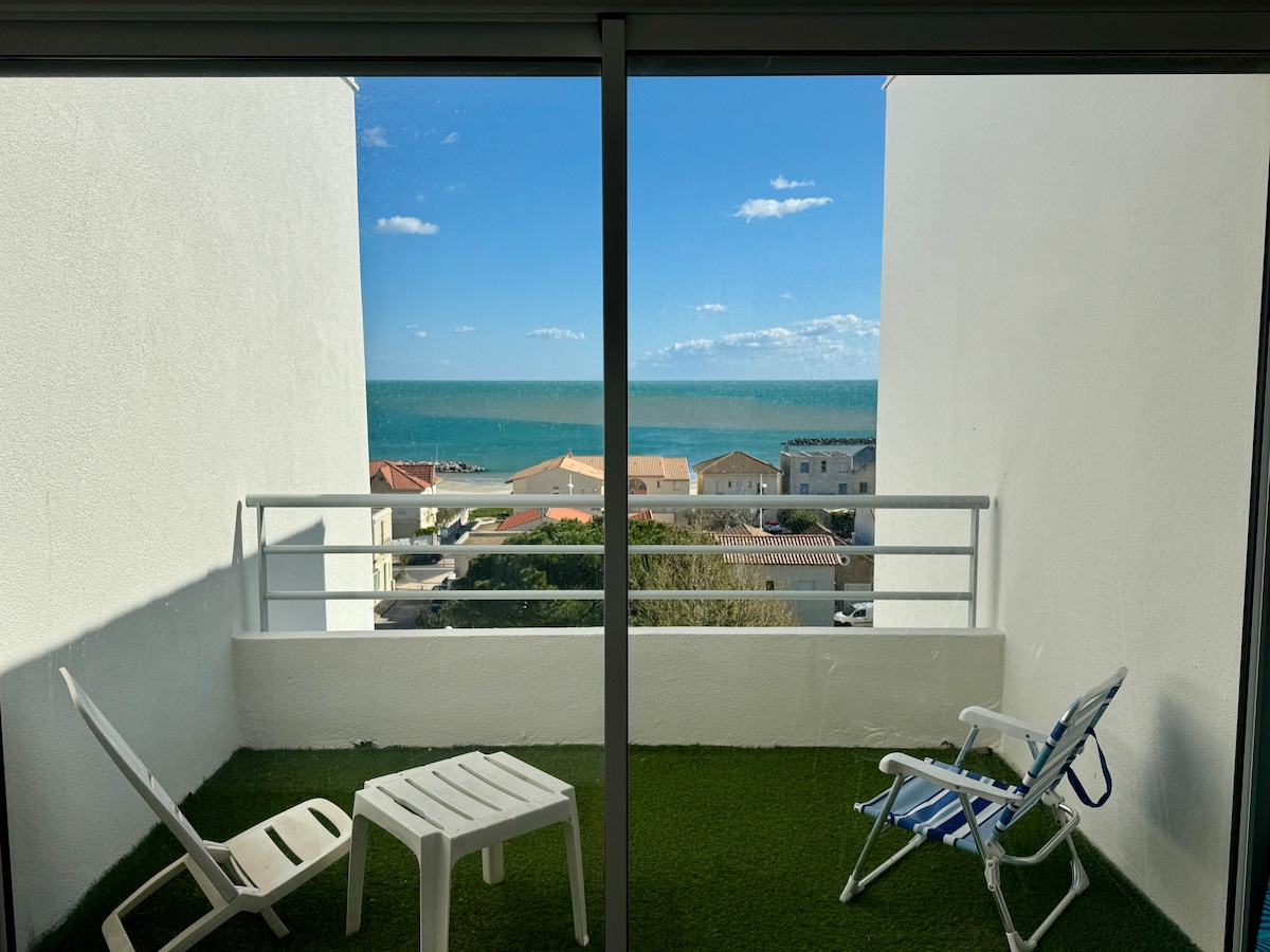 卡农海滨公寓(Résidence Mer et Soleil Carnon),无敌海景,5°et