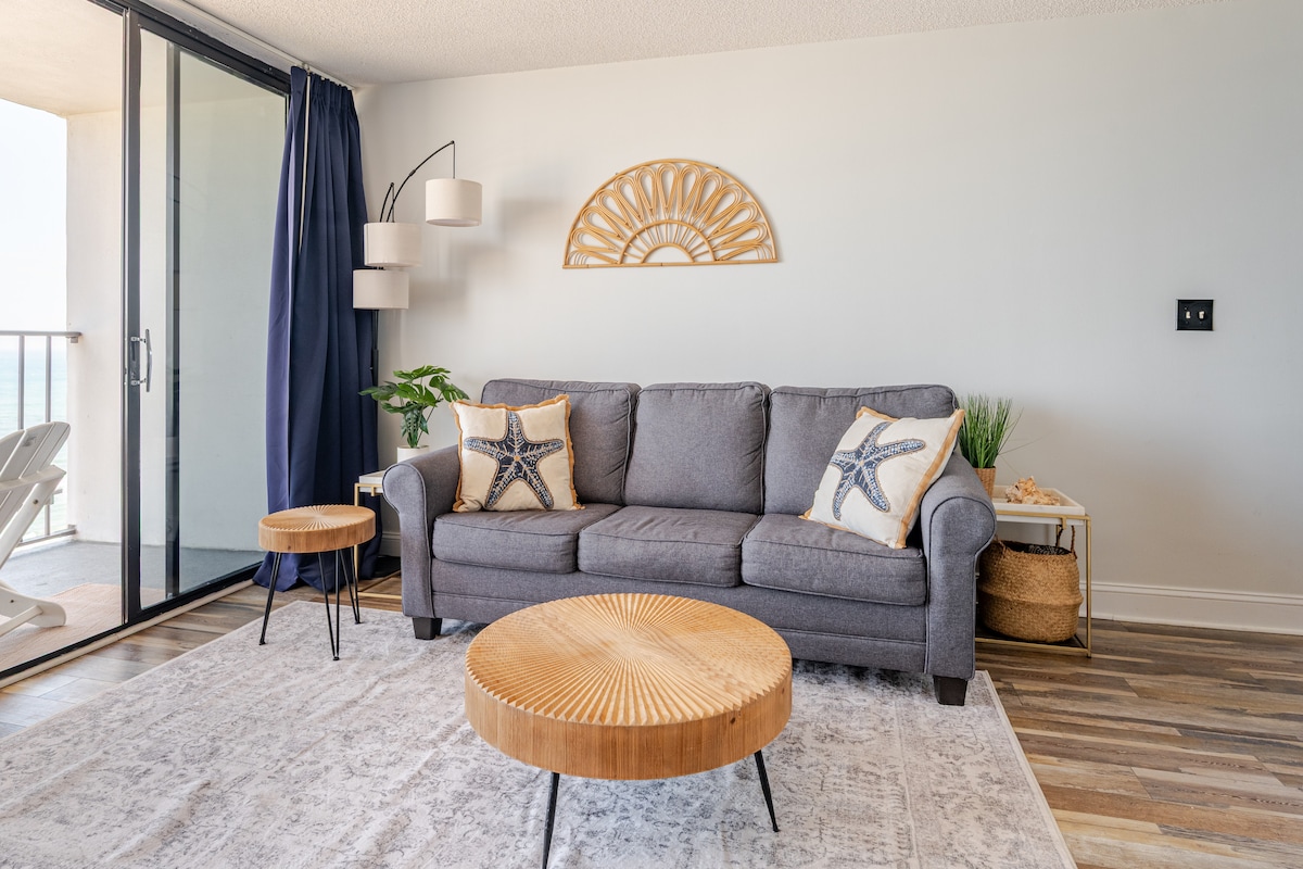 You'll love sipping coffee and watching the sunset from the front deck of this beautiful and much sought after 3rd floor ocean view condo with private pool and a beach access is just a short walk away. This NON-SMOKING condo includes, 2 flat screen SmartTVs, cable, & private WiFi. The kitchen contains all essential tool, a limited amount of spices/staples. There's also a Keurig with a variety of coffee pods for your enjoyment. The queen sofa bed sleeps 2 comfortably. No pets are allowed.