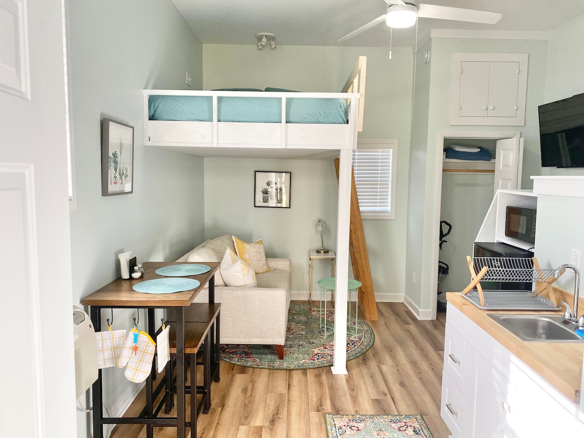 Welcome to your coastal-chic retreat—just 75 steps from beach access (Yes! We counted!). Perfect for a romantic escape, solo recharge, or beach weekend with a friend, this private 1BR suite blends comfort, style, and location. Enjoy morning walks on the sand, sunset cocktails at the Ocean Grill & Tiki Bar, and cozy nights in your freshly furnished suite—all without moving your car. Everything you need for a carefree Carolina Beach getaway.
