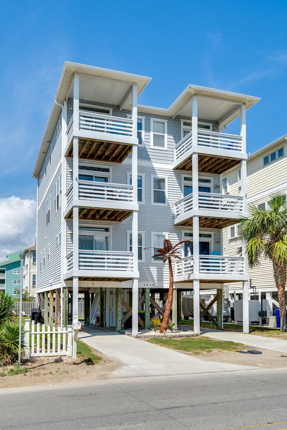Redwood Villa blends modern charm with coastal serenity. Centrally located in Carolina Beach, this home is only a short 3-min walk to the beach. A few key amenities include: ✓ 6-seater golf cart rental included. Driver needs to be 25 years or older with active driver's license (Max of 4 drivers. $25 per additional driver) ✓ Private condo on bottom floor with kitchenette ✓ Bicycles, beach chairs, beach umbrellas and wagon provided ✓ Linens, towels, body wash, shampoo and conditioner provided