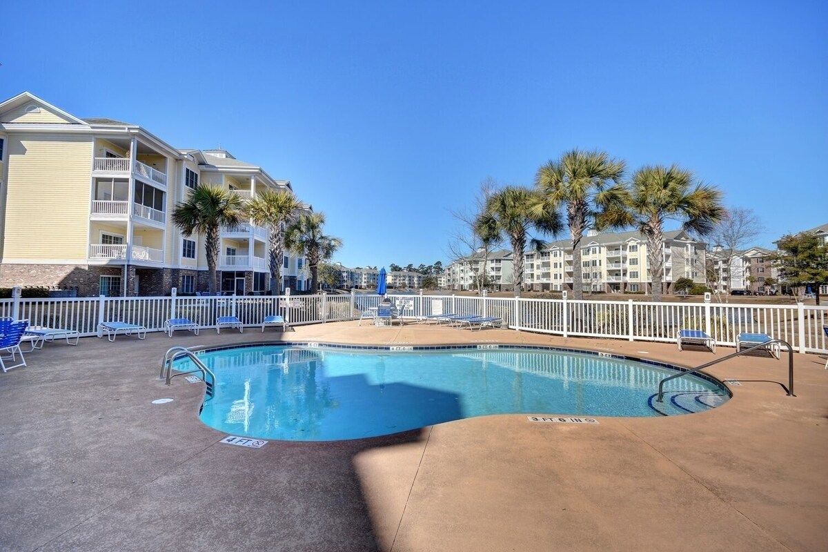 Get away at this stylishly renovated vacation rental! This centrally located condo, perfect for adults and/or families, is minutes from 10 golf courses, outlet shopping, family amusements and sports facilities and miles of beaches! This friendly community features large pool, grilling facilities, playground, and bike racks. The condo is complete with newly updated 2 full baths, kitchen, laundry and new appliances! Enjoy the screened porch overlooking the fountain pond and manicured grounds.