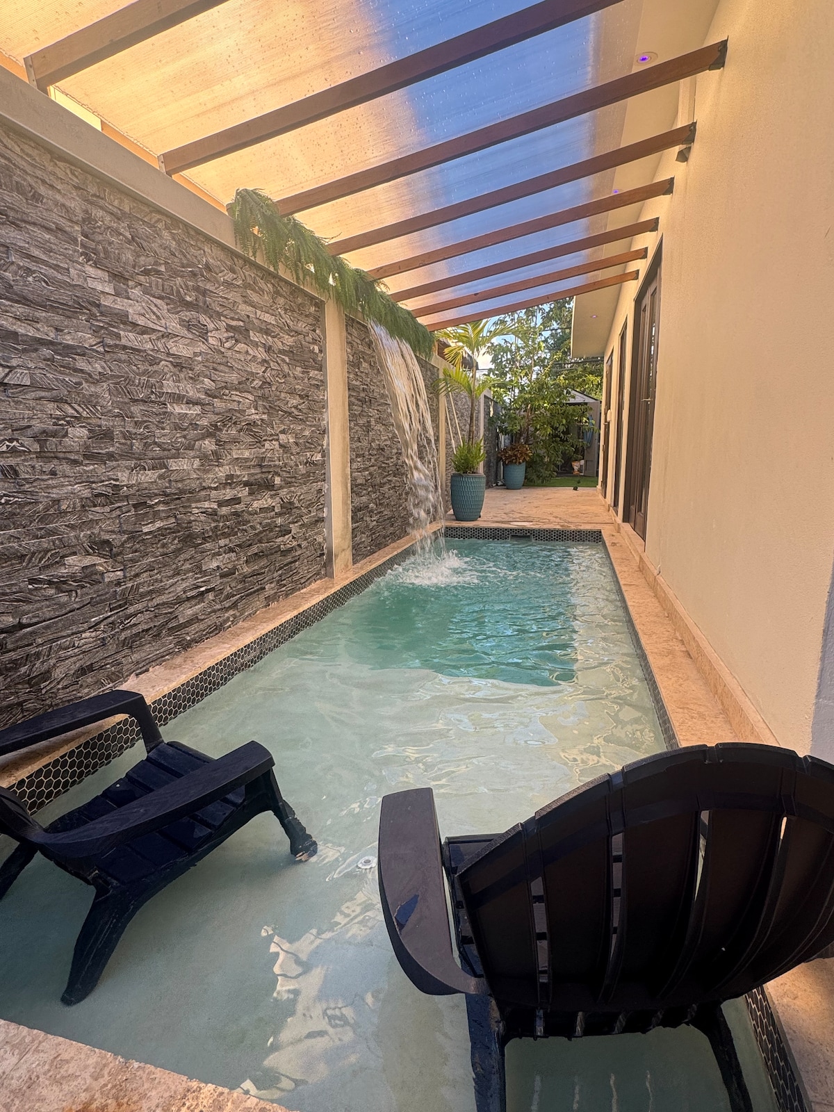 Your family will be close to everything when you stay at this private and well-equipped home in Vistamar. Relax in the warm bubble pool or enjoy the tropical garden designed for true grounding. It’s located in a non-touristy residential area and was designed to give guests the experience of living like a true local, thinking in the needs of a visitor like you. All sheets and towels are cleaned with extremely hot water and chlorine-free detergent to disinfect them before each guest arrival.