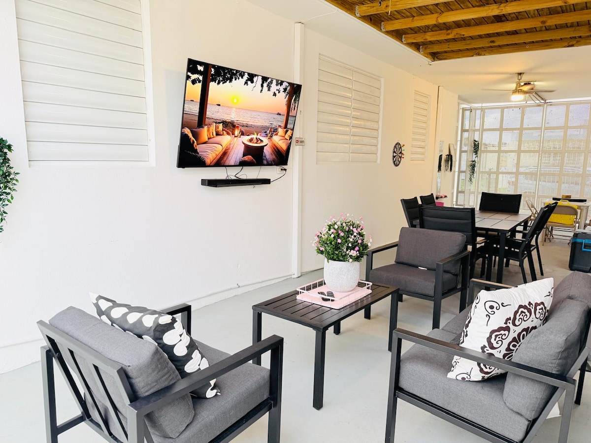 Diviértete con toda la familia en este alojamiento con estilo. Lugar espacioso y lujoso. Tiene picina, BBQ y muelle para pescar con vista a Isla Verde. También cuenta con rampa para tirar botes , tv en todos los cuarto y sala , internet y bocinas bluetooth. Tiene un yate en el muelle que puede hospedar 2 huéspedes más con un costo extra para añadir este servicio comunícalo con el anfitrión y con reserva de tres o más noches tienes 2 horas de motora acuática gratis