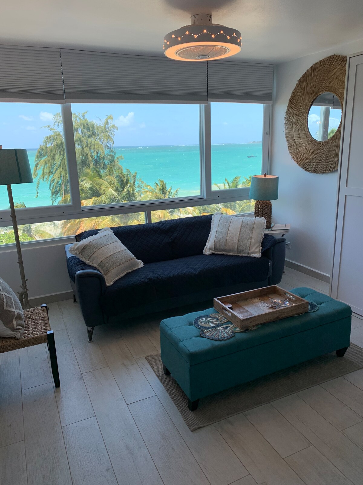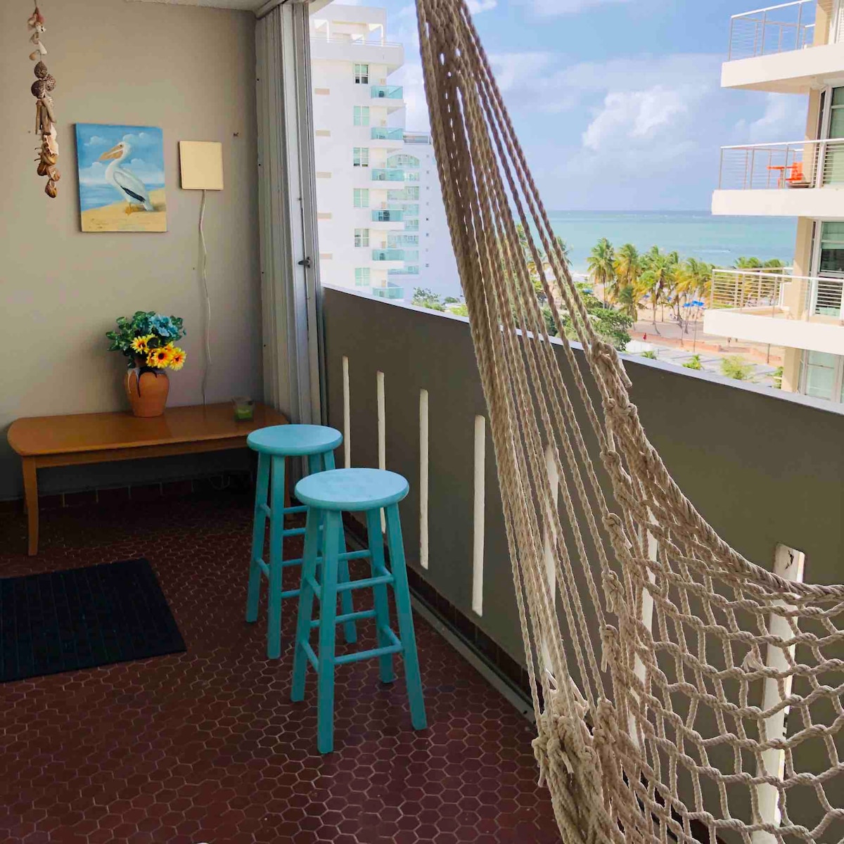 If you’re planning on staying on the most beautiful beach in the greater San Juan area, you’ve found the right place! Located on one of PR’s best strips, you’ll have turquoise waters on one side & a 2mile strip to explore on the other. Just take the elevator down! No hidden fees. 5 min from airport, 10 min or less to Old SJ, cruise ports, downtown SJ, Santurce, Condado, etc and 45 min drive to El Yunque. Free parking, air conditioning, hot water, beach equipment, SmartTV, Wi-FI, solar chargers.