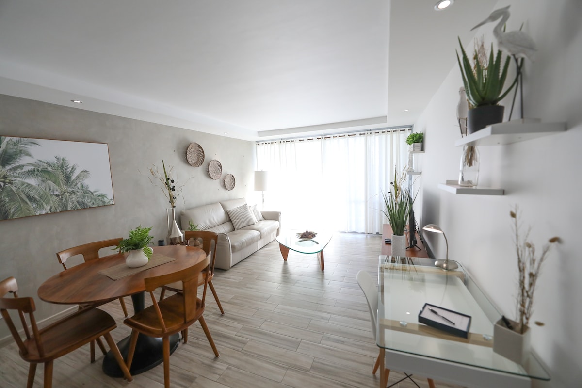 Penthouse Apt. studio in ESJ Towers condo-hotel 5 minutes from airport, direct private beach access, swimming pool, night live, restaurants, shopping centers, supermarkets, parks, near everything. You’ll love the beach, mountains views. Perfect for couples, solo adventurers, business travelers, families, groups. 1 assigned indoor private parking. Note: the swimming pool area, restaurant, are closed among other services for renovations, I apologize for the inconvenience.