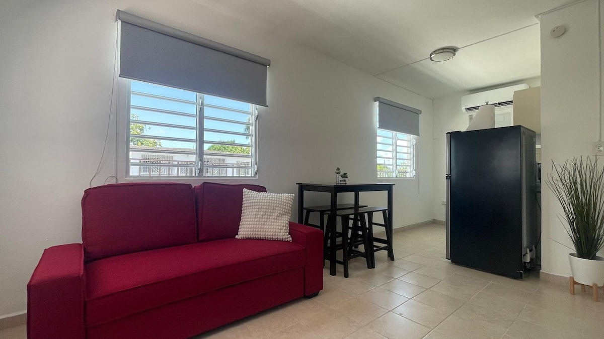 * NEW and stylish furnishing to make this your deluxe home in Carolina * Luxury Apartment with 1 large bedroom 10’x19’ with comfortable queen bed, Smart TV, Closet * 1 Spacious and modern bathroom 5’x15’ * Our comfortable kitchen is equipped with everything you may need for your stay. * Elegant living room with space to work from home, Hi Speed Wi-Fi, Mini Stereo sound system CD, Bluetooth. Air-conditioning throughout the apartment. * Patio with Jacuzzi, table, chairs and canopy bed.