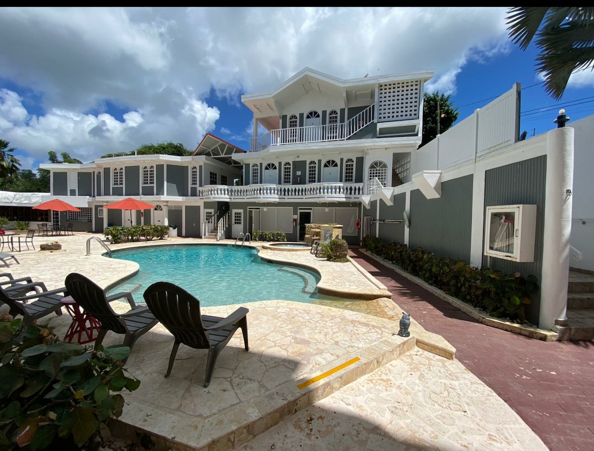 Easy access to the Isla Verde Beach, just a short walk from the Inn. Enjoy our convenient central location walking distance from the supermarkets, pharmacies, restaurants, and a great spanish bakery called La Panadería y repostería España. Short Uber ride to the San Juan night life We're ready for any situation ⭐️ 1 Power Generator ⭐️ 3 Water Tankers ⭐️ 1 Automatic Gas In-Line Water Heater: hot showers ⭐️ 1 Outdoor Common Pool Opened Everyday From 8am-10pm ⭐️ 4 Exterior Security Cameras