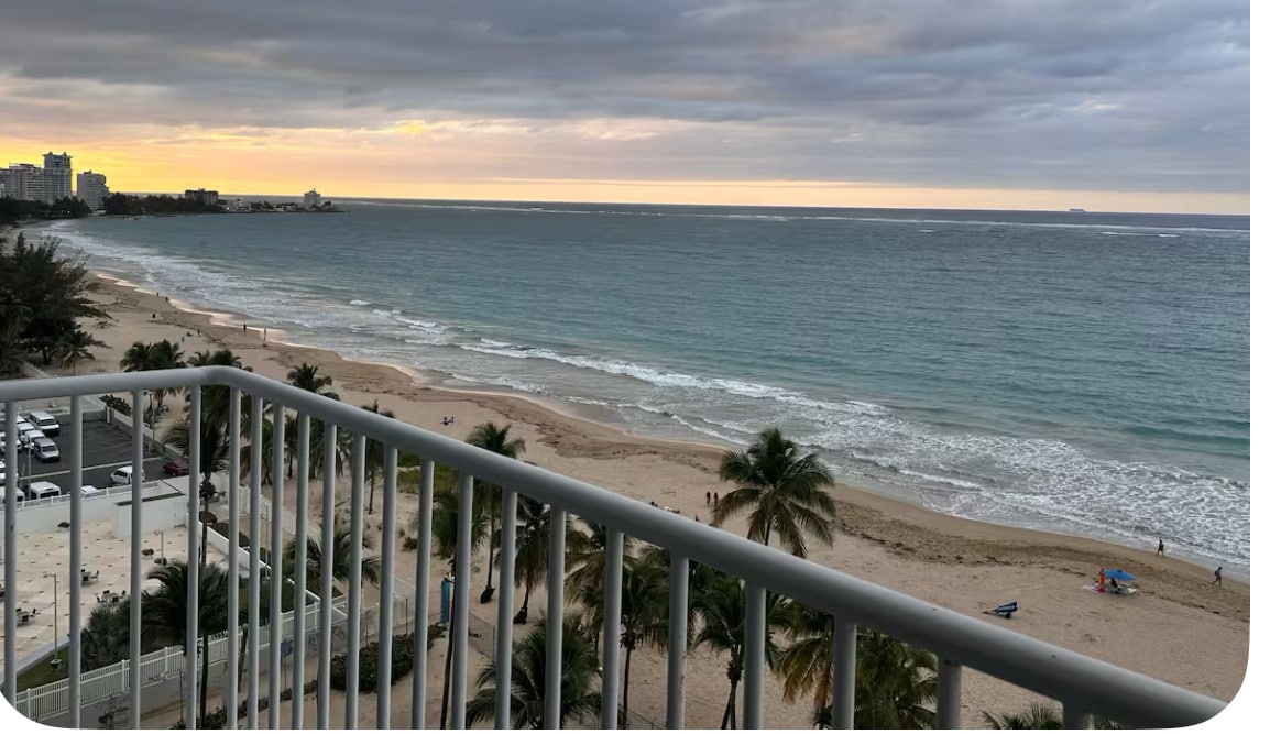 Enjoy million-dollar ocean views from this 15th-floor studio, just 5 minutes from SJU Airport ✈️ and steps from the beach 🏝️. Fully equipped for your stay with a king bed, pull-out sofa, and kitchen 👩‍🍳. Self check-in anytime after 3 PM, one free parking 🅿️ spot, and access to paid laundry 🧺 machines. Free luggage storage 🧳 before check-in/after check-out. A 24/7 supermarket is 5 minutes away. **NOTE: Pool is closed** Book your Puerto Rico 🇵🇷 escape today! ☺️