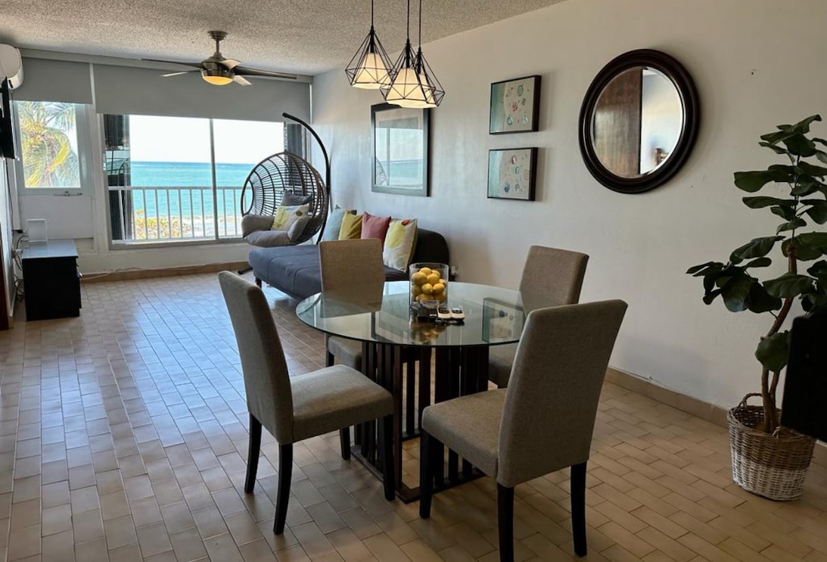 Apartment accommodates 2 guests. Perfect place to enjoy the ocean breeze at our beachfront deck & pool. Neighborhood provides an authentic tropical getaway full of local bars & restaurants, beach spots, lagoon, boardwalk, bike & kayak rentals just at walking distance. Airport, grocery stores, beaches and night life just 5 miles form the property.