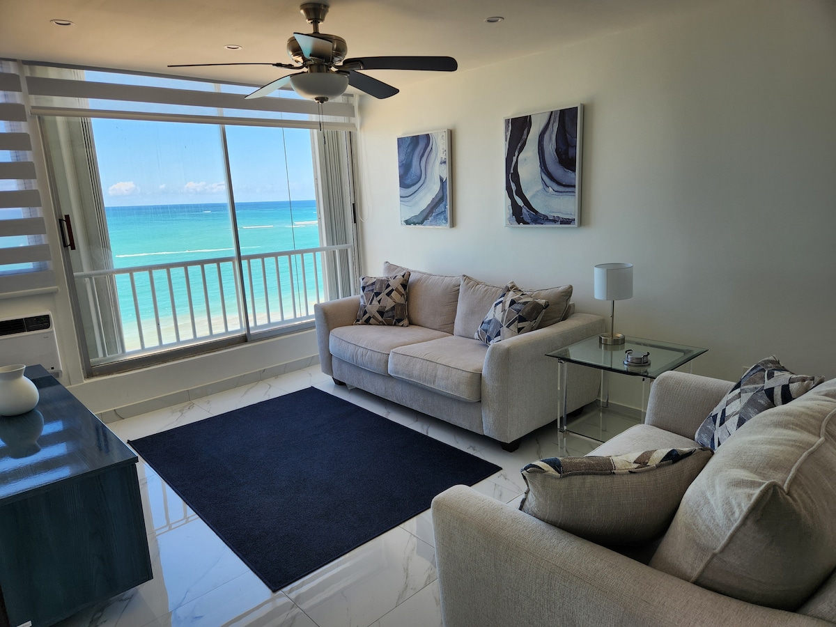 Hi. Looking for a beachfront apartment? Look no further! This is a beachfront 1 bedroom apartment that sleeps 2 in the best beach in San Juan! 15min from Old San Juan, 7min from the Airport, near shops, restaurants, hotels, casinos, nightlife, and a vibrant walking district. Hear the ocean waves, feel the breeze, enjoy the sun! The building has a private beach entrance, basketball court, tennis court (currently closed), pool, gazebos, bbq area, and more! Welcome to the Island Living experience!