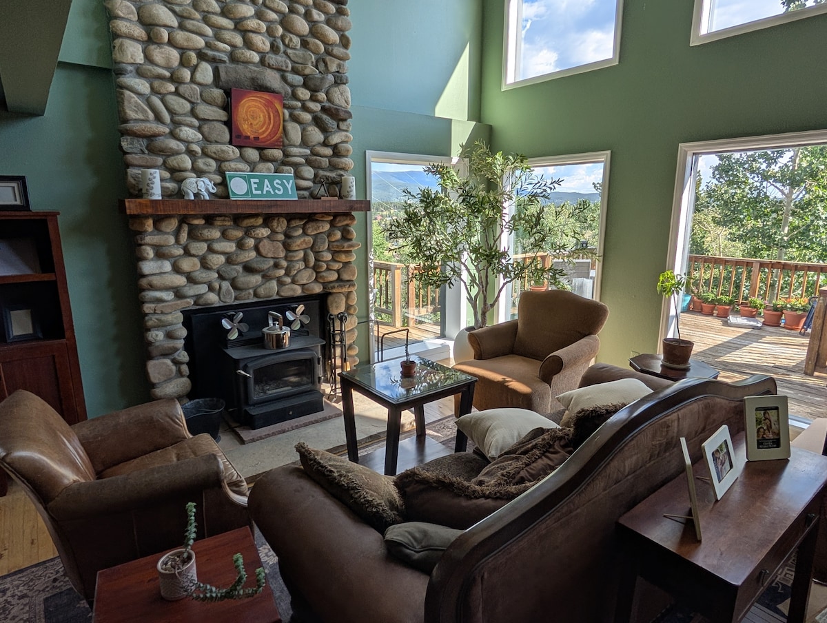 Jaw-dropping mountain views at 8600' high! That is what you will experience in this paradise from your exclusive suite. Enjoy, relax and chill on these 3+ acres overlooking the Rockies. Breathtaking place to sip an adult beverage, escape the city and recharge. Your suite includes a bedroom, bath, separate sitting/ dinning room and private entrance. Wildlife abounds from your window or go hiking and explore on your own. We look forward to meeting you!