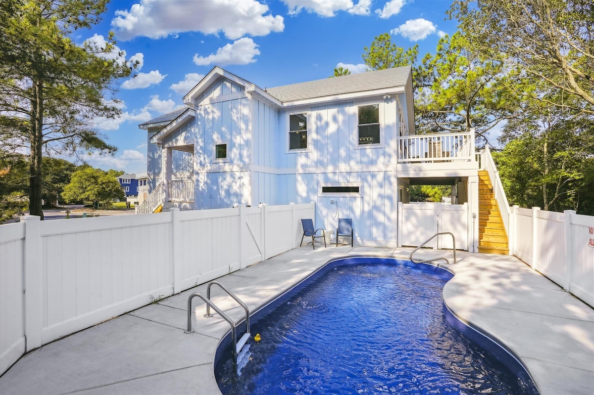 Sunrise Surf House is right across the street from the ocean, with great views! The access to the ocean is only 2 houses away. Our large pool will have free heat starting the end of April -mid October. . We also have a 6 person hot tub on the pool deck, closed Jan/Feb. Family and dog friendly! (See House Rules). We are centrally located 3 houses away from Southern Shores Crossing Shopping Center, where you can walk to dining, pizza, ice cream, shopping, and even an escape room.
