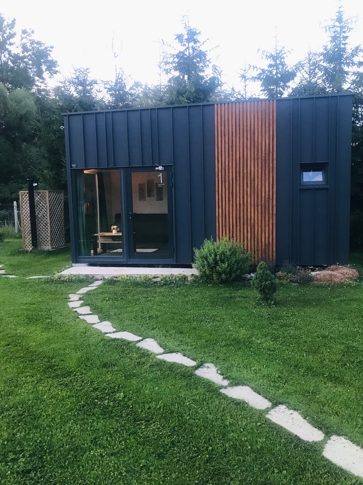 Vychutnajte si prvé bývanie v lodnom kontajneri na Slovensku. S jedinečným ostrovným systémom, budete mať dostatok vody aj elektrickej energie. Pre vaše pohodlie je v kontajneri plne vybavená kuchyňa, rohová vaňa, posteľ s rohovými oknami, fínska sauna, mala teraska s výhľadom na Vysoké Tatry, Kráľovu Hoľu a Slovenský raj. Smart TV, WiFi, chladnička s mini barom sú u nás samozrejmosťou. V letných mesiacoch Vám prinášame ponuku elektro bicyklov. Ubytovanie je určené pre 2 osoby.