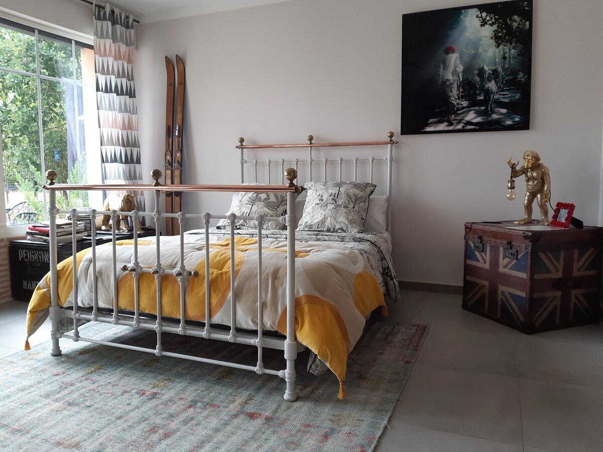 Vous apprécierez votre séjour dans ce logement plein de gaité, esprit bohême. SDB à partager avec autres voyageurs. Parking gratuit. Chambre à l'étage. Ouest. Rue tranquille. 2mn de la forêt , 5 mn hôpital Laënnec, 10 mn Zenith, 20 mn aéroport, 20 mn centre Nantes, 45 mn mer, 2 mn périphérique. Bus 89. Lit 140. Sur demande lit parapluie. Linge de maison et serviettes fournis. Café, thé, bouilloire ds la chambre. Accès micro ondes dans notre cuisine