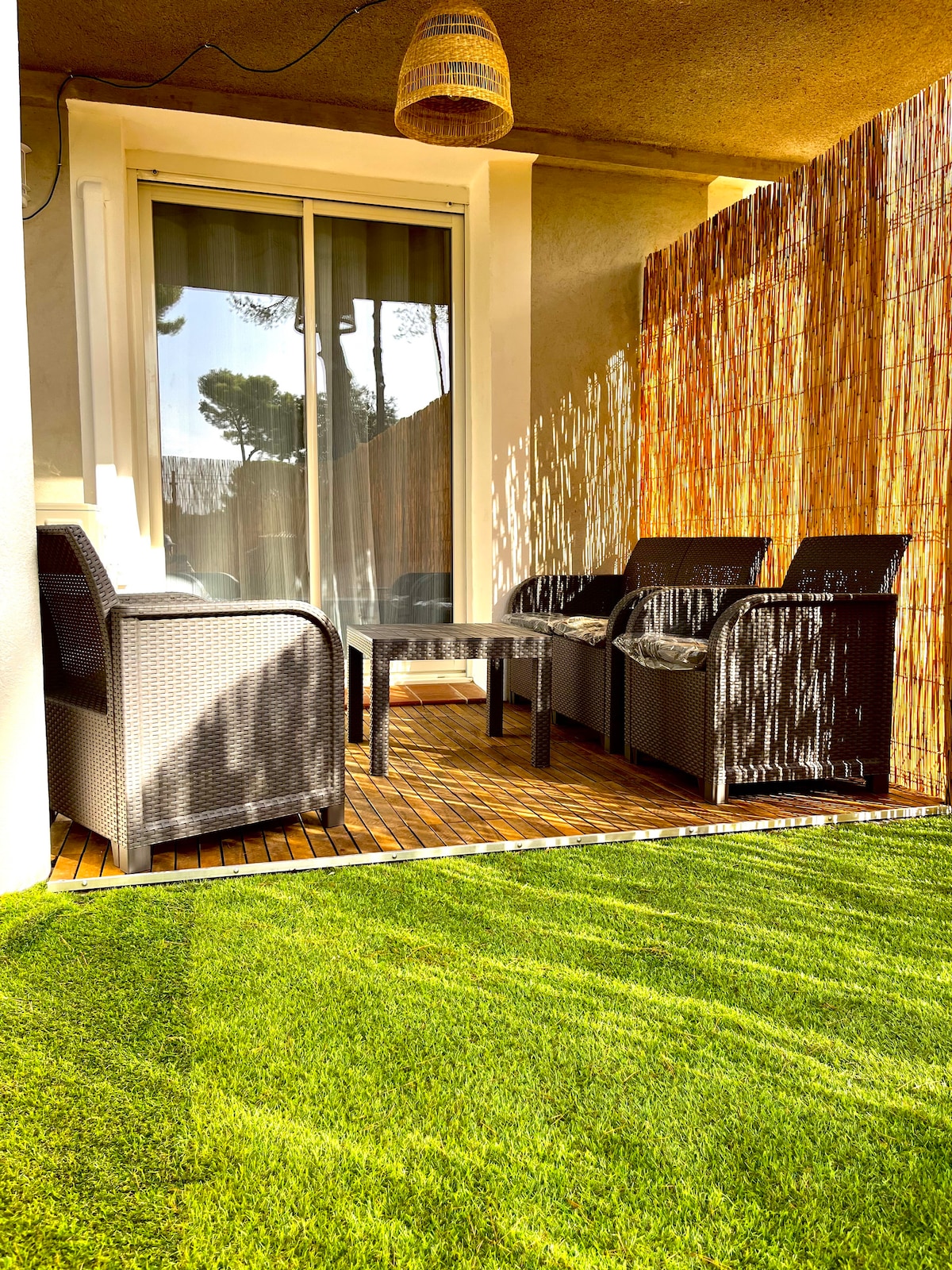 Bienvenue à Beau Rivage ! Imaginez commencer votre journée avec un café en terrasse, suivi d’une balade en kayak sur une mer d’un bleu cristallin… puis d’une partie de pétanque sous les pins avant d’admirer le coucher de soleil sur la plage du parc de Beau Rivage.Ici, chaque instant est une invitation à la détente et au bien-être. À 100m de la plage, installez-vous dans ce studio moderne et cosy, avec terrasse privative. Garez votre voiture, ne l’utilisez plus, tout se fait à pied.