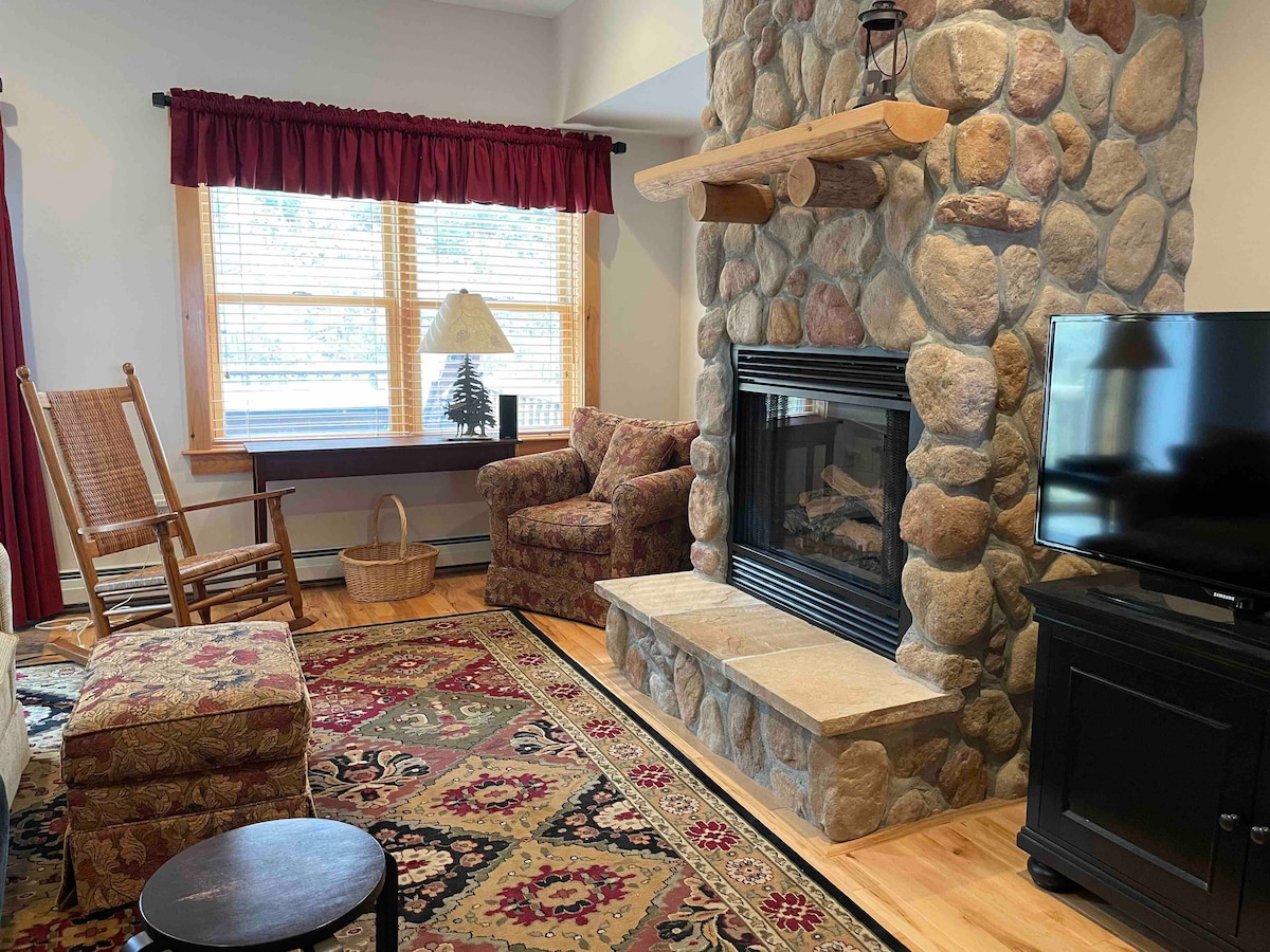 Snowbrook Village Condo with 2 bedrooms, 2 bathrooms and 1 sofa bed. Can host 5-7 people. Perfect place to spend time outside during the day and relax by the fireplace in the evening. Kitchen is well outfitted so you need only bring your food and outdoor gear. Just a few steps away from the Snubber chairlift with pool and hot tubs available in the Village. Outside locker for your ski/golf equipment. Golf course, mountain bike trails, hiking and more nearby. Air conditioned in the summer.