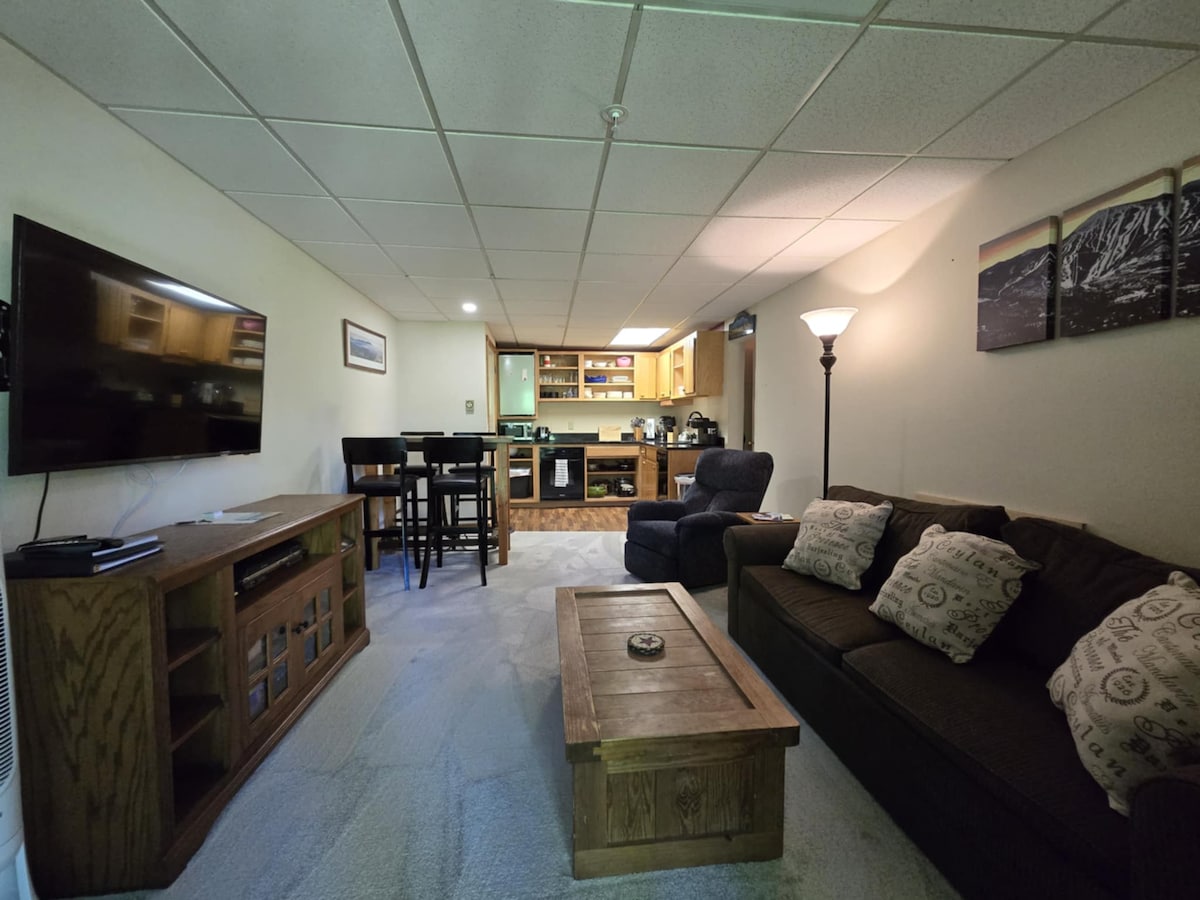 Relax, ski, snowshoe, mountain bike, hike or just flake out in our spacious three-bedroom lower-level apartment in Reddington East -- just 10-minutes from the Loaf. 1500 square feet, fully equipped kitchen, comfortable living area great for watching the game, blazing fast internet, and a spectacular view of the mountain. There's plenty of room for your skis, coats, and other items in the secure entryway.