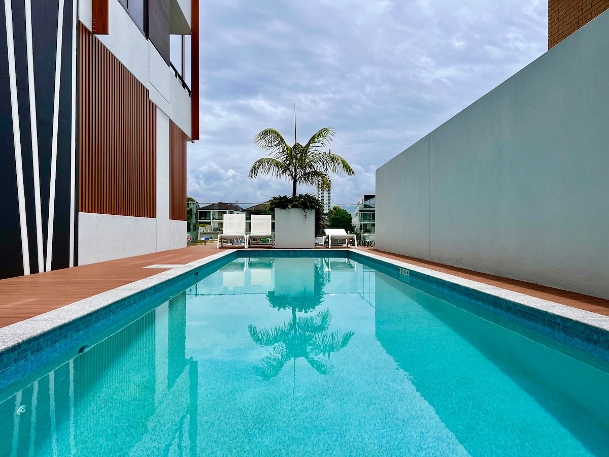 Beautiful, light, private & compact DOWNSTAIRS fully self-contained studio apartment, with separate entrance No car is needed as you can easily access all bus routes and G-tram within 10 minutes. You can also walk to the beach, Pacific Fair Shopping Centre, Broadbeach bars, restaurants, Jupiter's casino, Dracula's cabaret, nightlife and all other amenities. Relax near the pool area , overlooking the canal with your favorite beverage and snacks.