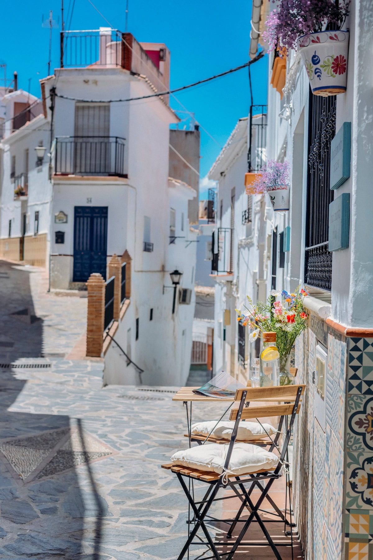 Apartamento Nispero is located in Casa de la Montaña, an authentic Spanish village house with a modern touch and all the facilities you need for a great holiday! The house consists of 3 flats and a large roof terrace with shard rooftop bar. The casa is centrally located in Sayalonga with all sights and restaurants within walking distance. Apartamento Nispero is on the ground floor with a gardenset in front and direct access to the street, perfect for a cycling holiday!