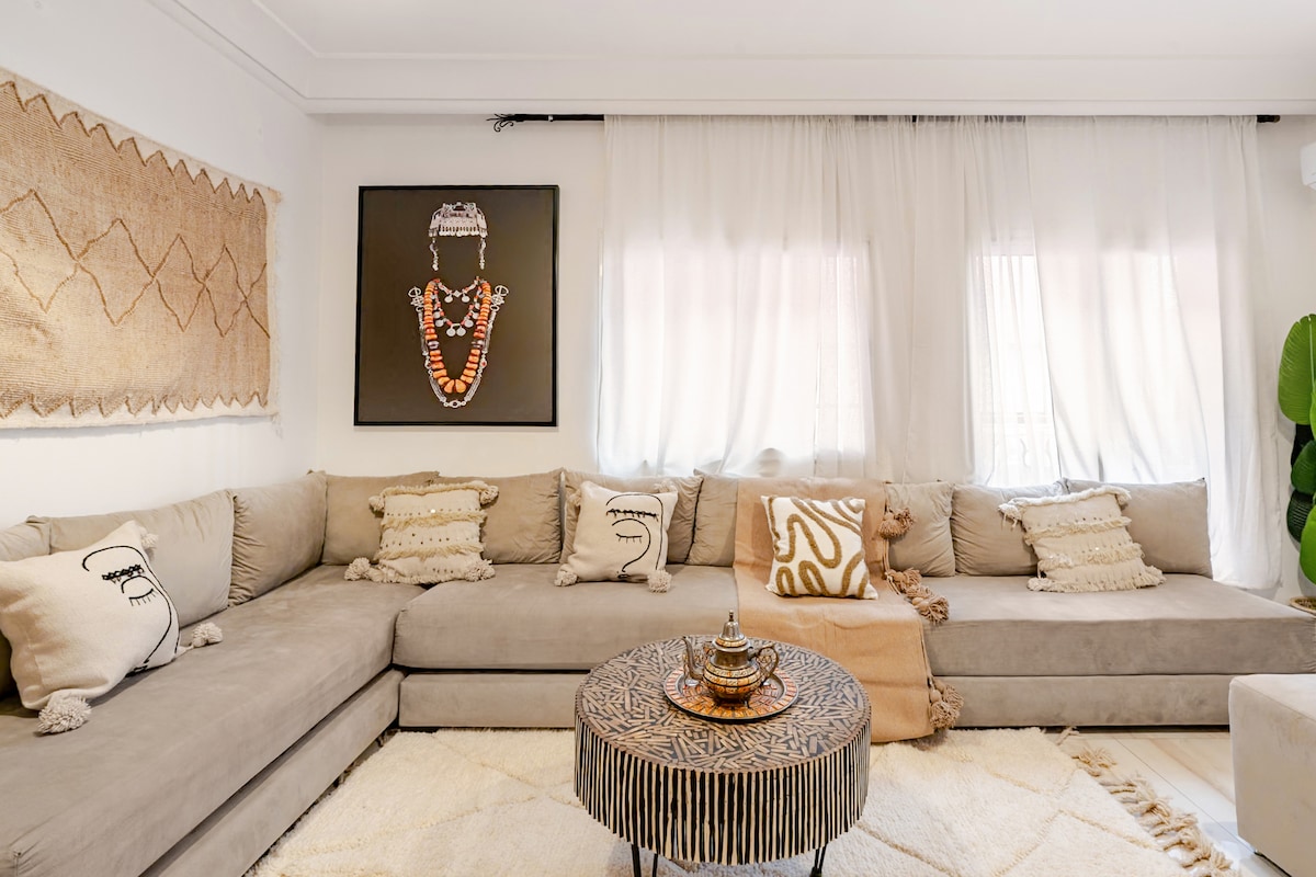 High Standing Apartment in Marrakech at heart of the famous district of Gueliz on the famous place Marrakesh Plaza. Wonderfully located in the VOGUE residence above the ZARA brand and MACDONALD , this small jewel having a complete equipment will guarantee you a most comfortable stay. Equipped with everything you’ll need, you’ll get there feel like home. A luxurious and warm three-room apartment in the city bubbling from Marrakech.
