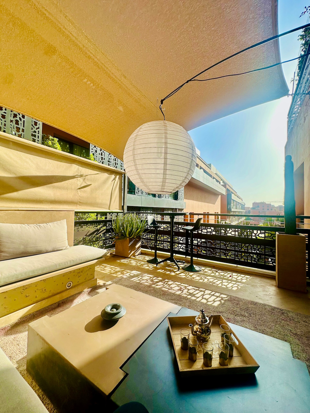 Appartement chaleureux et hors pair, idéalement situé dans une résidence neuve en plein coeur du quartier mythique, gueliz, très bien asservi et proche de toutes commodités. Avec un style moderno-marocain, l’appartement est aménagé pour que vous vous sentiez chez vous, très calme et confortable, c’est le point de départ idéal pour profiter des vacances, du soleil et des merveilles de Marrakech, ainsi que pour y séjourner pour un voyage d’affaire, il est idéalement adéquat au télétravail.