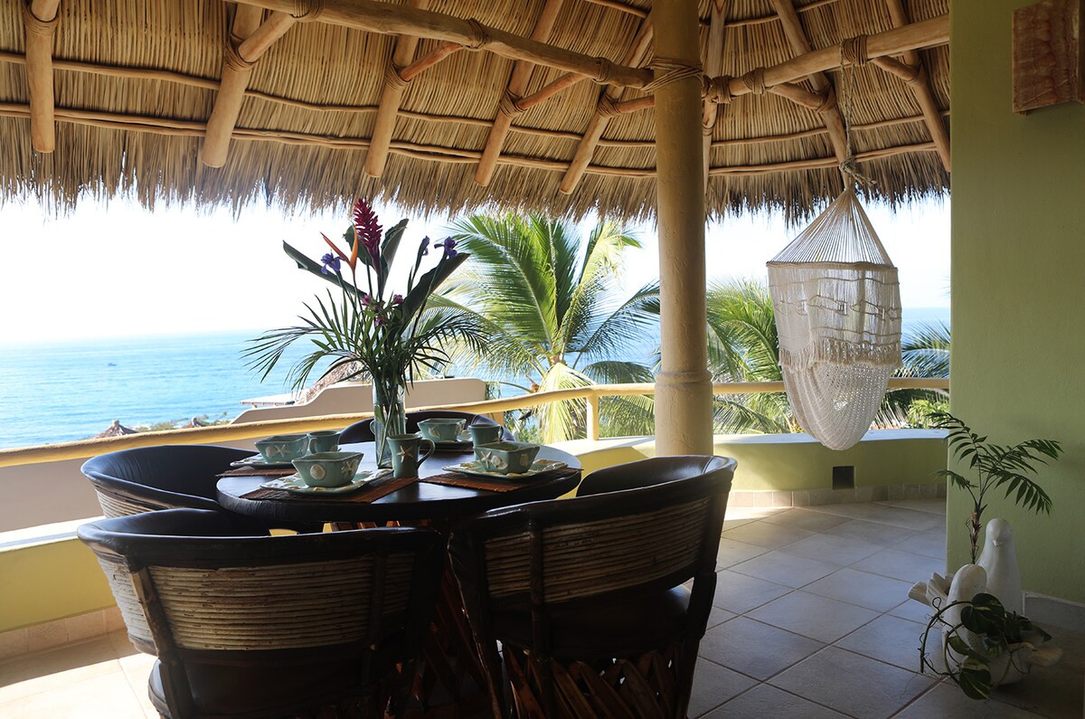 Casa Don, on the tip of Sayulita Bay, has panoramic views from the town to the sea from the private terrace in the best location in Sayulita! Stay a 5-minute walk from downtown Sayulita. Swim on the beach in front of the property and in the shared pool. The two-bedroom, two-bathroom bungalow has a private terrace, fully-equipped kitchen, Wi-Fi, and cleaning service (Monday to Saturday). All requests to bring pets will be automatically denied.
