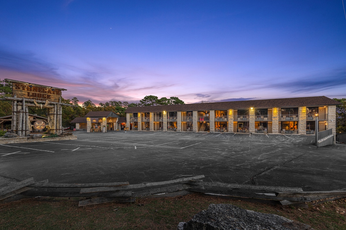 This lodge style Airbnb motel is the perfect mix of comfort, vintage style, and rustic touches. A popular stop for mountain bikers, motorcyclists, and adventure seekers! 2 mi. from HISTORIC DOWNTOWN Eureka Springs 4 mi. to Thorncrown Chapel 6 mi. to Lake Leatherwood 12 mi to Beaver Dam KEY FEATURES: ☀ Plush King-sized Bed ☀ 50” Roku TV ☀ Salt Water Pool ☀ Fire Pit & Covered Pavilion ☀ Eureka Springs Trolley Stop ☀ Ziplining, Canoe & Kayak Rentals Nearby