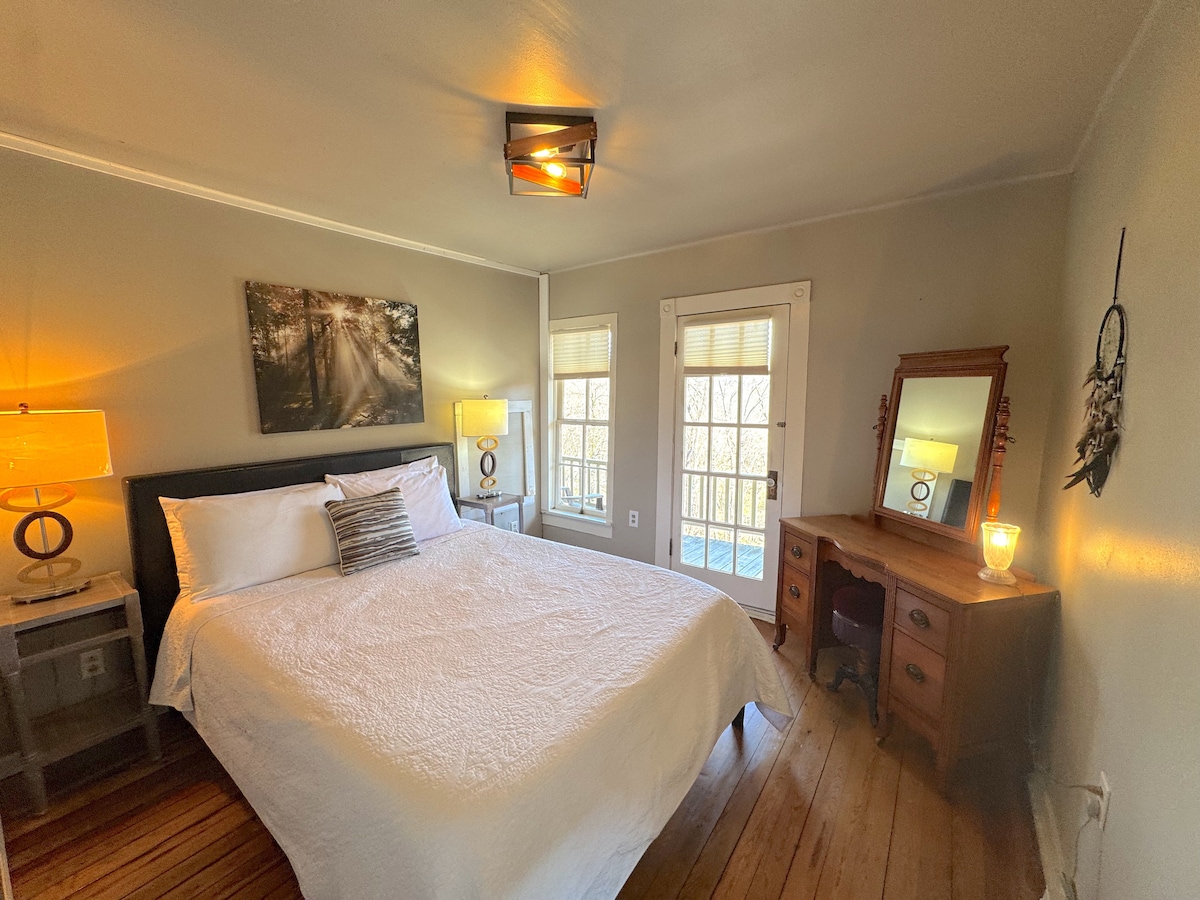 Miles away from ordinary but only a half mile from Main Street. If you crave serenity but want walking distance to the downtown scene, look no further. Featuring a creek, pond and fenced yard. The outdoor setting is beautiful, perfect for pets or people who just love the outdoors. This is the best kept secret in Eureka Springs, believe in magic. Bed - King Bed- Queen available- located in sofa. It is an extra 25.00 per person per night Pet Fee - 15.00 a night per pet