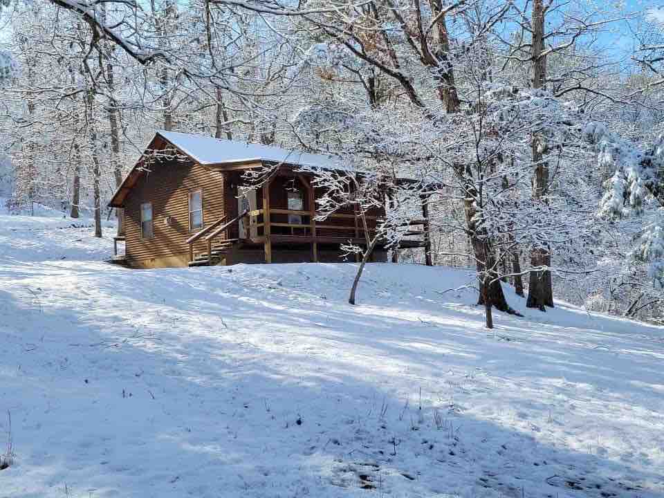 Studio log cabin in the heart of the Ozarks and Eureka Springs! * 18-acre woodland retreat just 11 min from Beaver Lake and 7 min from Lake Leatherwood. * Enjoy a kitchen, private deck w/ stunning valley view and hot tub, jacuzzi bathtub, and wifi. * 50" smart TV w/ Netflix access included. * Electric fireplace. * Locally roasted coffee provided. * Minutes to hiking, mountain bike trails, canoeing, restaurants, & shopping. * 5 mi to historic downtown Eureka Springs.