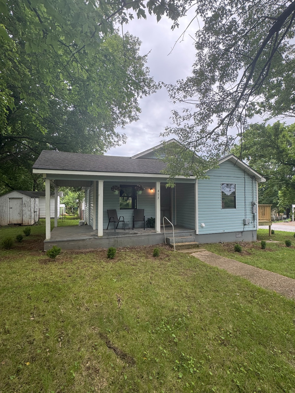 Property: 1 acre of property with no one nearby. Relaxing. Some guests have called it, "the best mountain porch ever." THE SECOND BEDROOM IS AN OPEN LOFT with 2 beds. There is NO door between bedrooms. THE BEST amount of space for a couple, 3-4 friends or a couple with 2 small kids. 12 minute walk to downtown bars, cafes, restaurants and boutiques. 5 minute drive to grocery. 30 minutes to Beaver Lake, museums, caves, mountain biking, hiking, rafting.