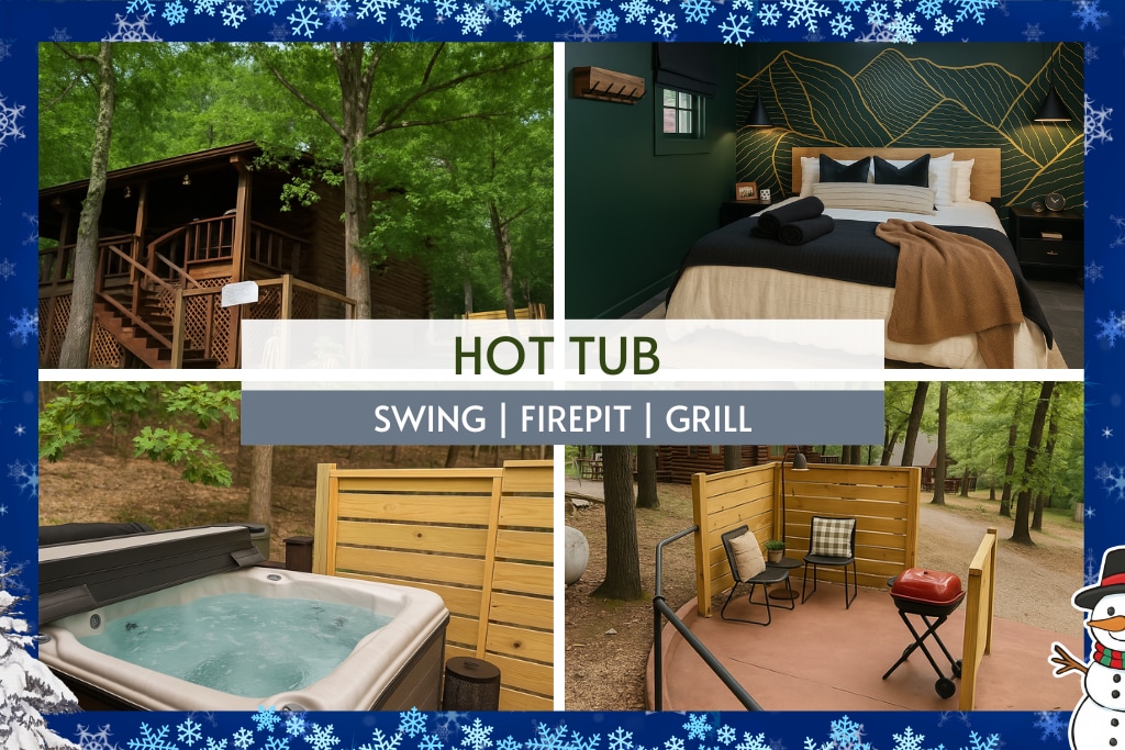 One bedroom Log Cabin in the heart of the Ozarks and Eureka Springs! * 18-acre woodland retreat just 11 min from Beaver Lake and 7 min from Lake Leatherwood. * Enjoy a full kitchen * Private back deck with hot tub and wooded view * Jacuzzi bathtub * WIFI. * 50" smart TV with Netflix access. * Electric fireplace. * Locally roasted coffee provided. * Minutes to hiking, mountain bike trails, canoeing, restaurants, and shopping. * 5 miles to historic downtown Eureka Springs.