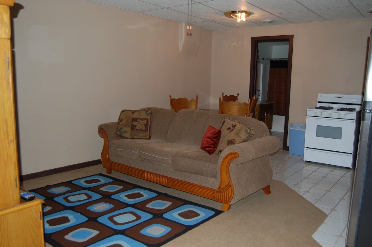 A Large spacious room perfect for families, work groups, or get togethers. Historic brick building. Close to eating establishments, bowling alley, grocery store, and bike trail. High speed internet. Stove, Refrigerator, and microwave in room. Dish TV. Located on 2nd Floor. There are stairs to entrance.