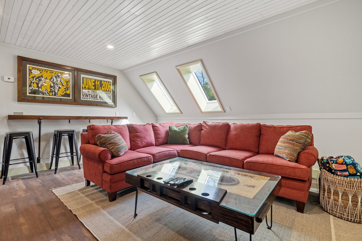 This ain't your mama's barn loft apartment! We have spent years building one of the best places to stay in the Weirs. We aren't on the lake but we are near everything you want to do. Walking distance to bars, restaurants and Funspot! The Experience hits you the second you open your own private door. Floating barnwood king size bed, Adult Bunk Beds, Custom Full Murphy Bed, A bathroom staight out of HGTV, 81" TV, Custom Mini Kitchen, Laundry Room, Eat in Area Coffee/Tea Bar too much to list