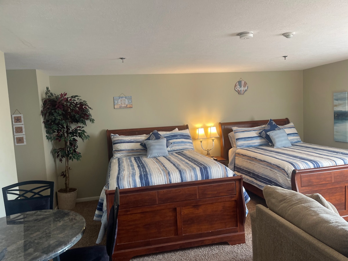 Studio condo, 2 queen beds, Laundry, restaurants