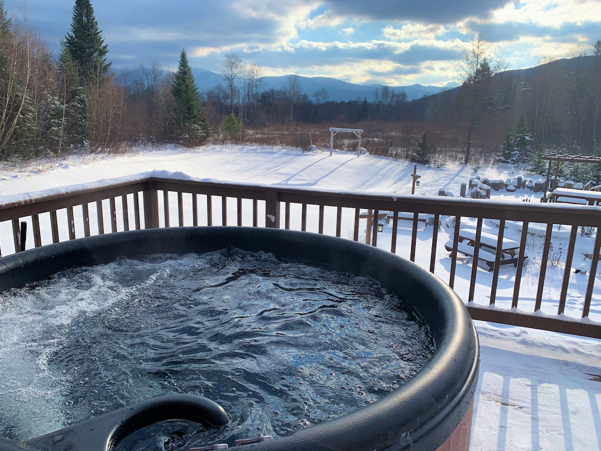 Soak in the mountain view while soaking in your private hot tub! 3 bedroom log cabin with an outdoor 6 person hot tub and an indoor Jacuzzi. Your own section of the Little River and view of North and South Twin Mountains. 8 minutes to Bretton Woods and the Mt. Washington Hotel. Close to Bethlehem, Littleton, Santa’s Village and an endless array of trails through White Mountain National Forest. Pet friendly and EV charger on site. Come to relax and enjoy everything the White Mountains offer!