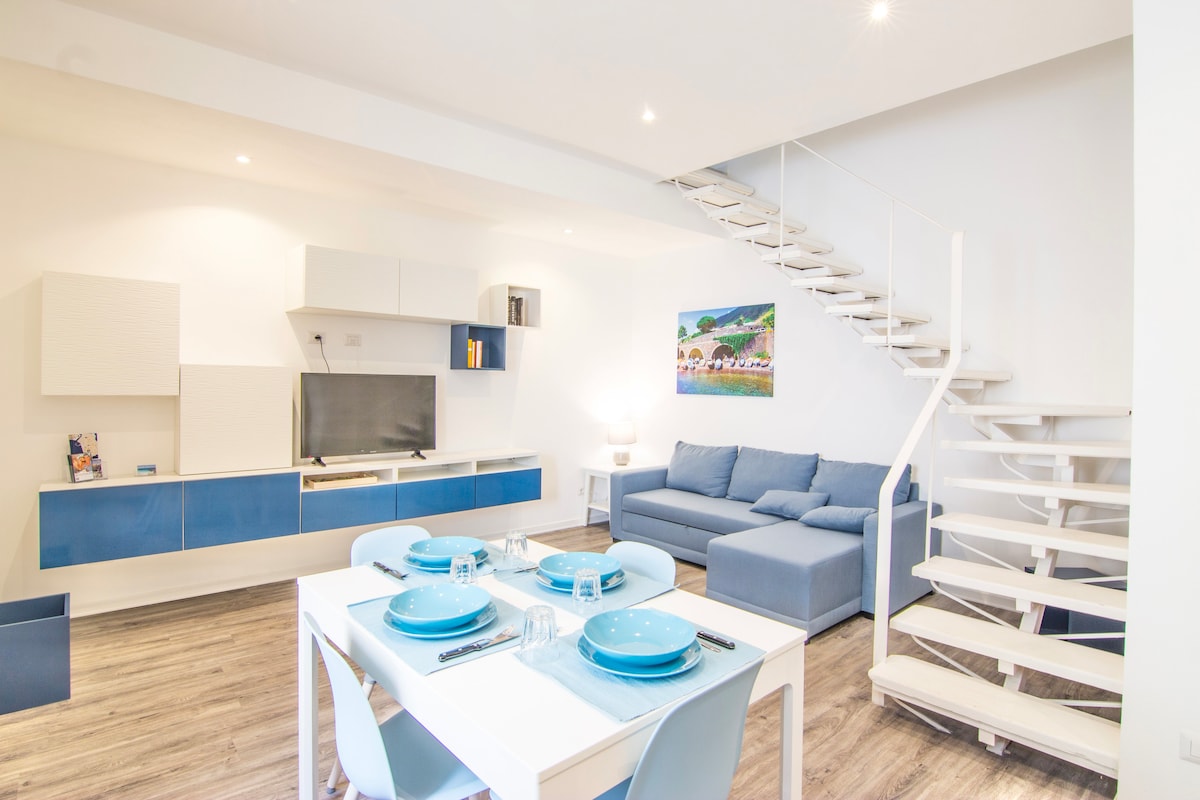 Elegant penthouse with private terrace in a charming historic building in Ortygia dating back to the 17 century. The house, full of natural light in every room, enhances the local architectural features, such as high vaulted ceilings and stone arches. It offers 3 bedrooms and 3 bathrooms. Perfect location to explore the old town. Equipped with all comforts, it can comfortably accommodate up to 6 people. Quiet and relaxing place in a unique location.