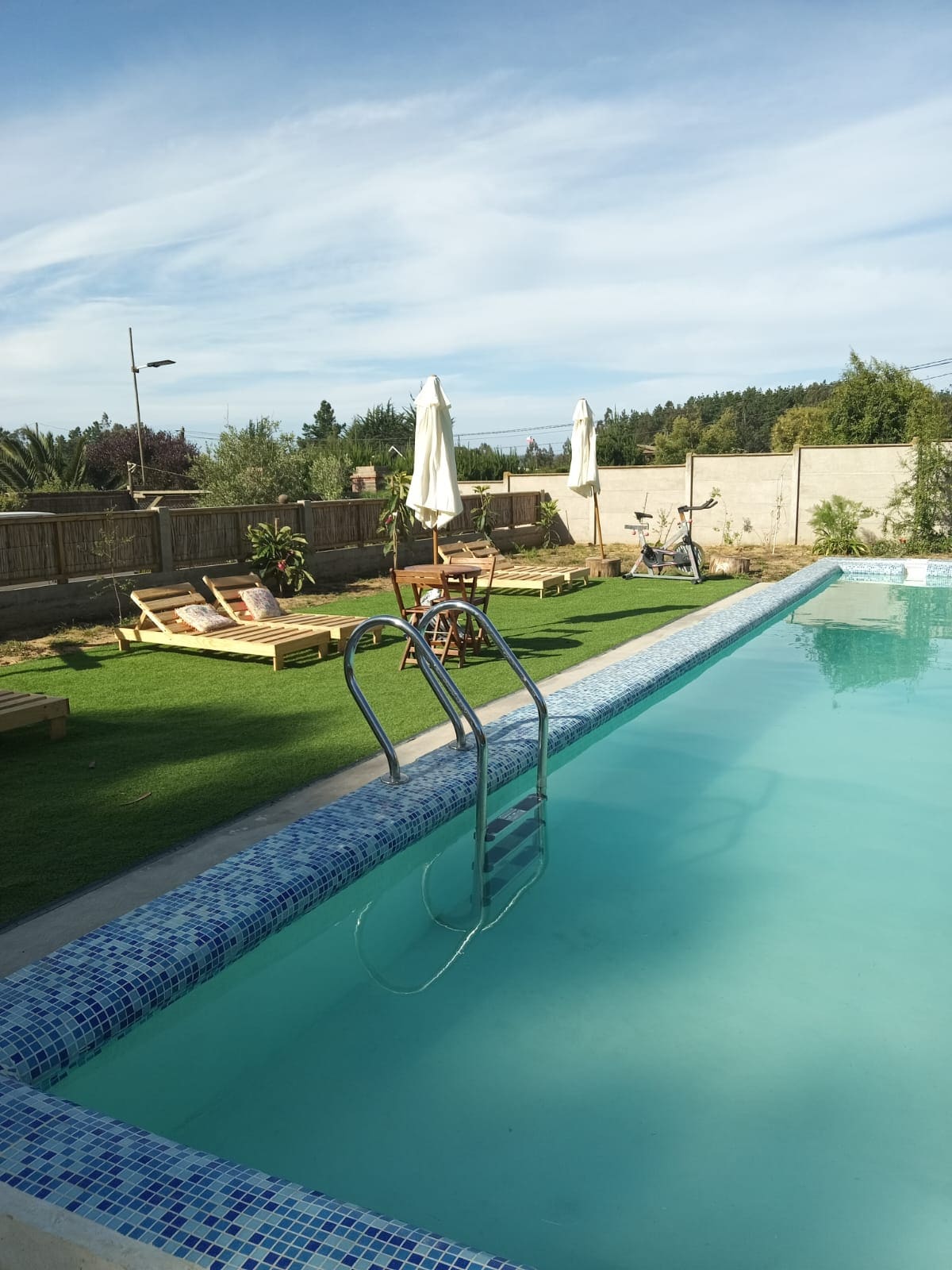 Linda y acogedora parcela en Algarrobo a 5 minutos en auto de la playa, a 15 minutos caminando. Lugar tranquilo y natural. La cabaña principal tiene living y comedor, Bosca, smartTV, wifi, cocina integrada con lavadora . Dos dormitorios y un baño completo. Hay cabañita exterior con dos dormitorios unidos y baño completo. La parcela tiene piscina en deck, quincho para asado con guirnalda de luces, juegos infantiles, casa en un arbol. Tiene bajada a la quebrada. uso exclusivo.