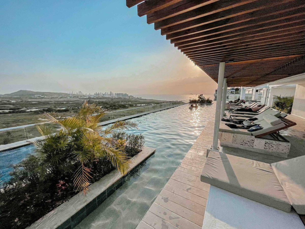 Discover luxury in our stunning Ocean View Penthouse located in Bocagrande, Cartagena. Perched on the 34th floor, relish panoramic city views and unforgettable sunsets. Enjoy the comfort of brand-new furniture and top-notch appliances. Experience top-tier amenities including 24/7 security, pool, 2 jacuzzis, gym, sauna & games room.Explore nearby dining, cafes, and 24hr supermarkets within a quick 5-minute walk. PLEASE NOTE: ONLY REGISTERED GUESTS CAN ACCESS THE CONDO. NO VISITORS ARE ALLOWED.
