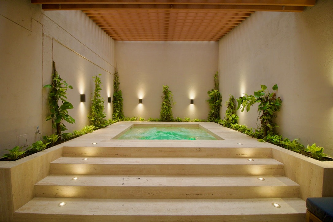 In the epicenter of the walled city. 1 block from cathedral and vibrant plazas, this luxury studio has everything you need for an unforgettable stay in Cartagena. Courtyard pool and rooftop with jacuzzi. 2 single beds with quality linens for friends, or join them for couples. Elevator and free W+D. 24/7 doorman. Private marble bathroom with strong hot shower and kitchenette. But really the best part is its location, you will be able to absorb the old city’s vibrant carribean culture.