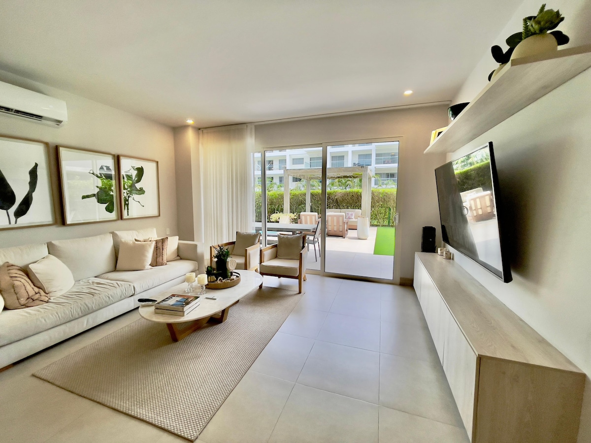 Welcome to your beautiful and comfortable apartment in the heart of Cartagena's vibrant Getsemaní neighborhood! This is the perfect home base to rest and recharge without missing any of the city's fun and magic. Step into a modern, stylish space with a warm and welcoming feel. The living room invites you to relax on a large sectional sofa under cozy lighting, creating a perfect spot to unwind after a day of exploring.