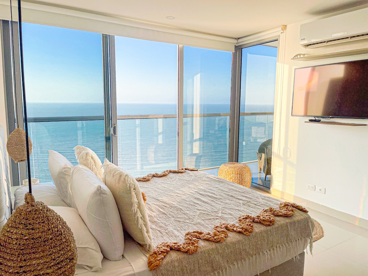 VISTA AL MAR/ apartamento a solo 5 minutos del centro histórico y 5 minutos del aeropuerto. Ubicado en primera línea de mar, todas las comodidades: vigilancia 24 horas, piscina, ascensor, parqueadero. Edificio 100% Airbnb, espacios con inspiración local y llenos de diseño, pensados para vivir historias extraordinarias. 1 habitación con cama king, 1 baño; salón comedor con sofá cama queen; cocina totalmente equipada; amplio balcón lleno de naturaleza. Wifi y aire acondicionado.