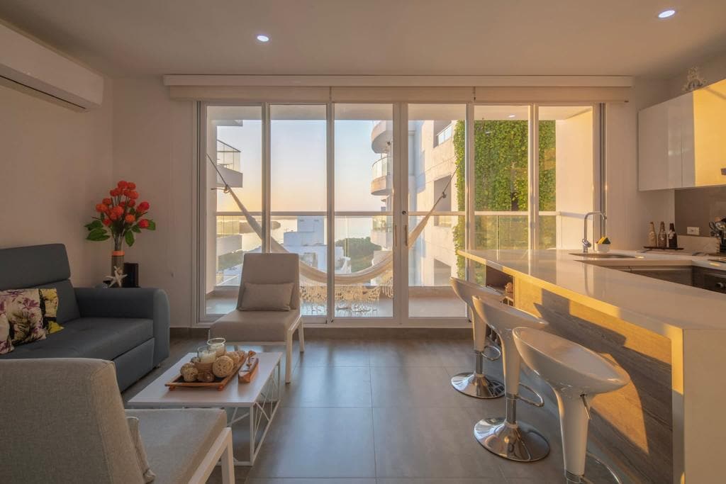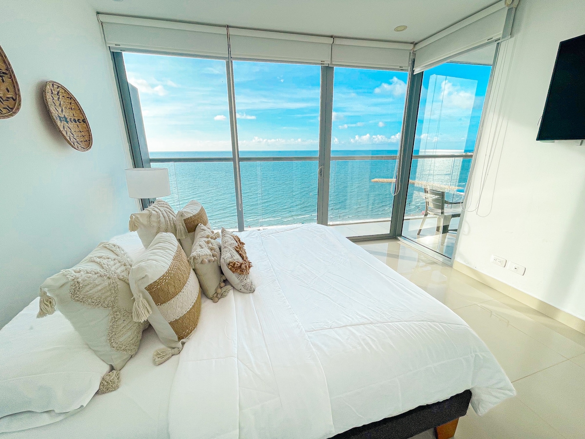 -2 habitaciones,Amplio balcon con vista a la cienaga - Cocina full equipada - Internet perfecto para Remote jobs - Cocina Full equipada - Primera linea a la playa con salida privada a la playa - A 10 min del centro historico en carro - A 5 min del centro de convenciones las americas -Minimarkets : Exito Express, Ara, Farmacias y restaurantes. - 2 Jacuzzis, Parque acuatico para niño, piscina infinita, piscina para niños, gym, sauna. (1) Parqueadero *No se permiten visitas, por favor no insista.