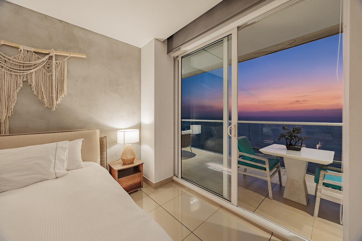 You'll LOVE The BLEU Suite: ✨Modern & Exclusive: Pool+Sauna+ Turkish Spa+ Coworking+24-Hr Security ✨Top floor suite with unobstructed views of Ocean+City ✨5 mins walk from airport ✨Steps from Beach+ 5 mins to Walled City ✨Huge Balcony+lounge seating ✨Maid Service included ✨ Tour Concierge Included - Special DISCOUNTS on tours ✨King Bed with premium mattress ✨Smart TV & High speed wifi ✨Private Soak Tub ✨Private Balcony Cinema ✨Self Check-in Smart Lock ✨Blackout Blinds ✨Luggage storage
