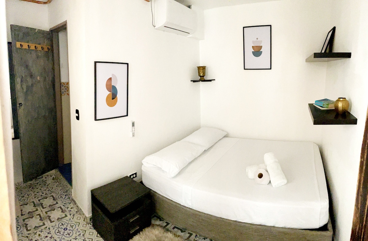 es un espectacular alojamiento para 2 personas, equipado con una cama doble y baño privado. Cuenta con magníficos espacios compartidos como una cocina equipada con utensilios básicos y zona de esparcimiento con TV y sistema de sonido, todo el sitio cuenta con conexión a internet wifi. Moderno lugar te ofrece muchos detalles encantadores.