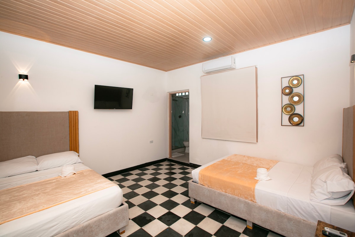 ¡Bienvenido a tu refugio caribeño en Bocagrande! A tan sólo una cuadra de la playa principal, este rincón encantador te recibe con seguridad, limpieza impecable y una tranquilidad paradisíaca. Camina al ritmo del mar hacia los mejores restaurantes; relájate y déjate envolver por una experiencia acogedora y llena de frescura tropical.