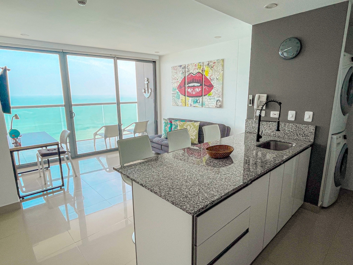 Este apartamento fue diseñado para que vivas una experiencia inigualable: ¡ApartaSuite a solo 10 minutos del centro histórico!, ubicado en el piso trece en exclusivo edificio de playa Cartagena, equipado con todo lo necesario para tu estancia en esta maravillosa ciudad, Wifi, con hermosa vista, donde se puede disfrutar de un lindo amanecer, también paseos por el parque y la playa, el comercio en sus alrededores y la proximidad al aeropuerto Rafael Nuñez a solo 5 minutos caminando.